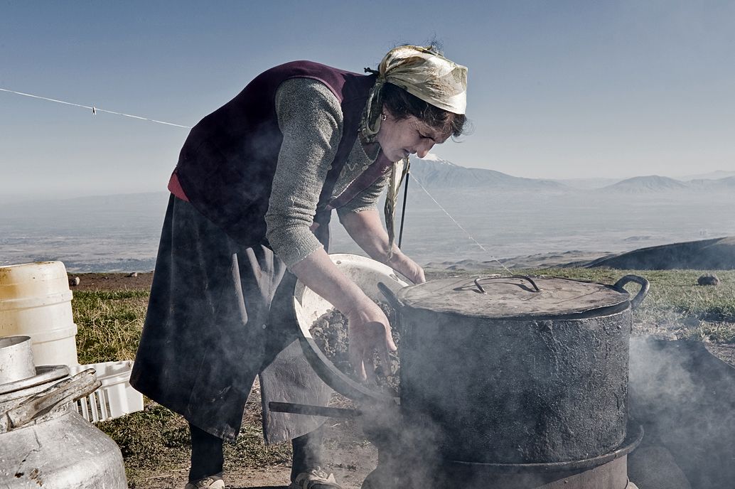 Die ehemalige Sowjetrepublik Armenien ist ein Staat in der gebirgigen Kaukasusregion zwischen Asien und Europa und durchlebt seit der Unabhängigkeit schwere Zeiten. Der Konflikt mit Aserbaidschan wegen der Enklave Bergkarabach verschlingt wichtige Ressourcen, die für den Aufbau einer modernen Infrastruktur fehlen. Darüber hinaus sind wichtige Industrieanlagen veraltet oder ganz stillgelegt. Am Fuße des Berges Aragaz weiden ethnische Jesiden in den Sommermonaten ihre Herden.