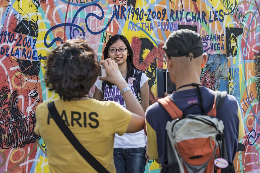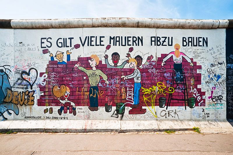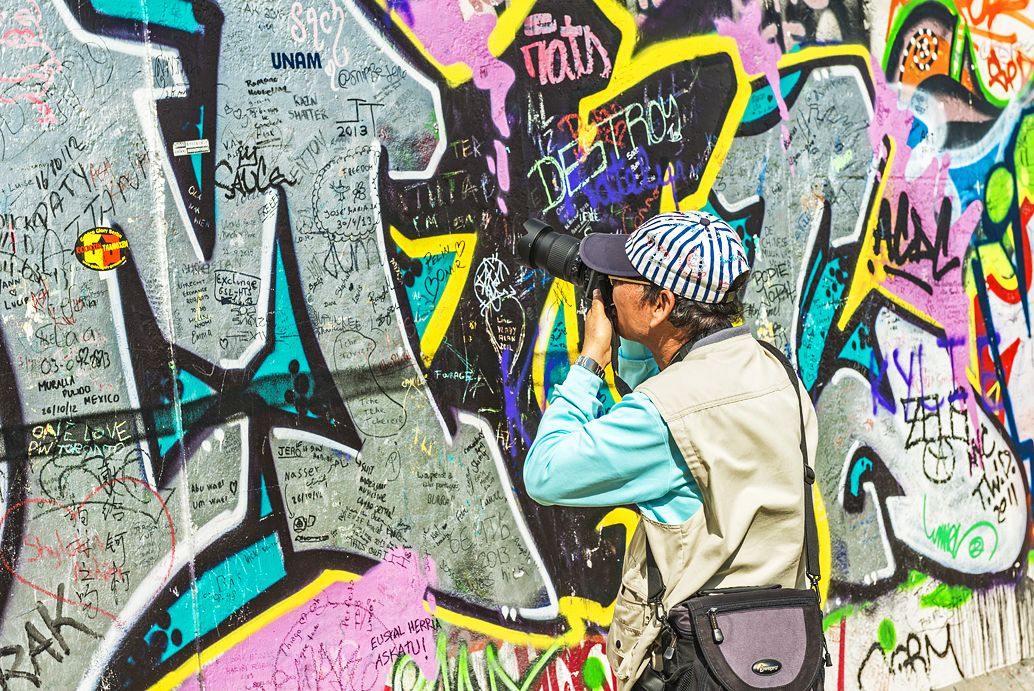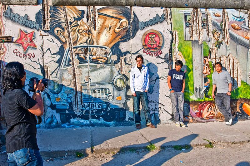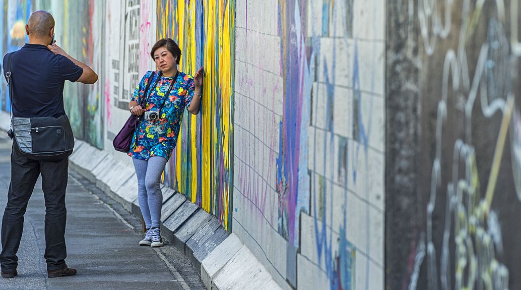 Der rund 160 km lange Berliner Mauerweg kennzeichnet den Verlauf der ehemaligen DDR-Grenzanlagen rund um West-Berlin. Die Fotostrecke dokumentiert Sehenswertes entlang der ehemaligen Grenzbefestigung, die angedeutete Mauerführung am Potsdamer Platz und vor den Regierungsgebäuden, das bunte Treiben im Mauerpark mit Kletterwand, Mountainbikern auf einem Parcours, die East-Side-Gallery, Gedenktafeln, Touristenrummel am Checkpoint Charlie u.v.m.