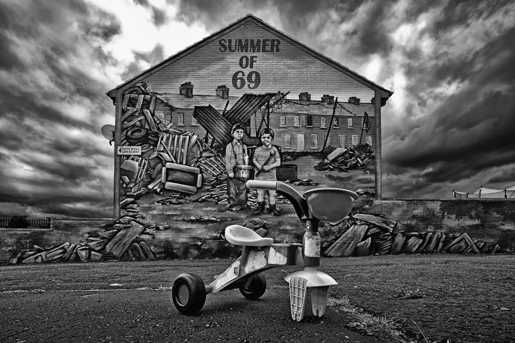 Eine Fotodokumentation in Erinnerung an den „Bloody Sunday“ und an den Freiheitskampf der Katholiken gegen die britische Administration. Aufnahmen von Bogside, einem Arbeiterstadtteil von Derry und von der Demarkationslinie zwischen den protestantischen und katholischen Wohngebieten in Belfast. Geteilt von einer hohen Mauer werden die Stadtteile bei bestimmten Anlässen zusätzlich durch massive Eisentore voneinander getrennt.