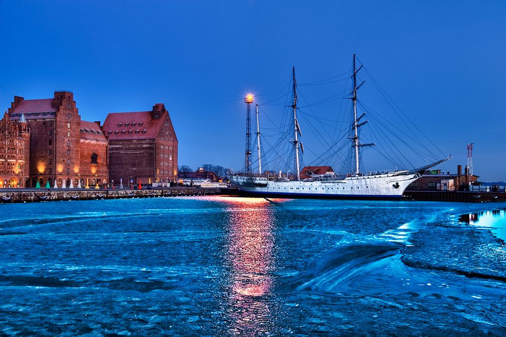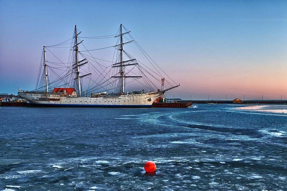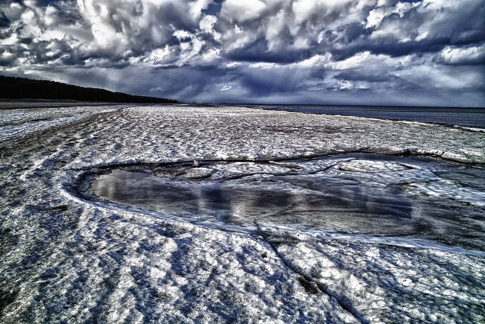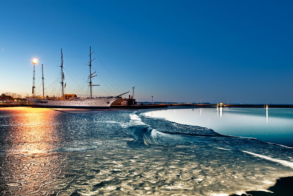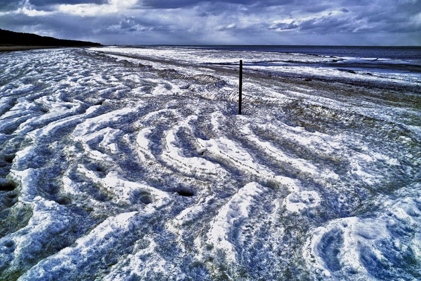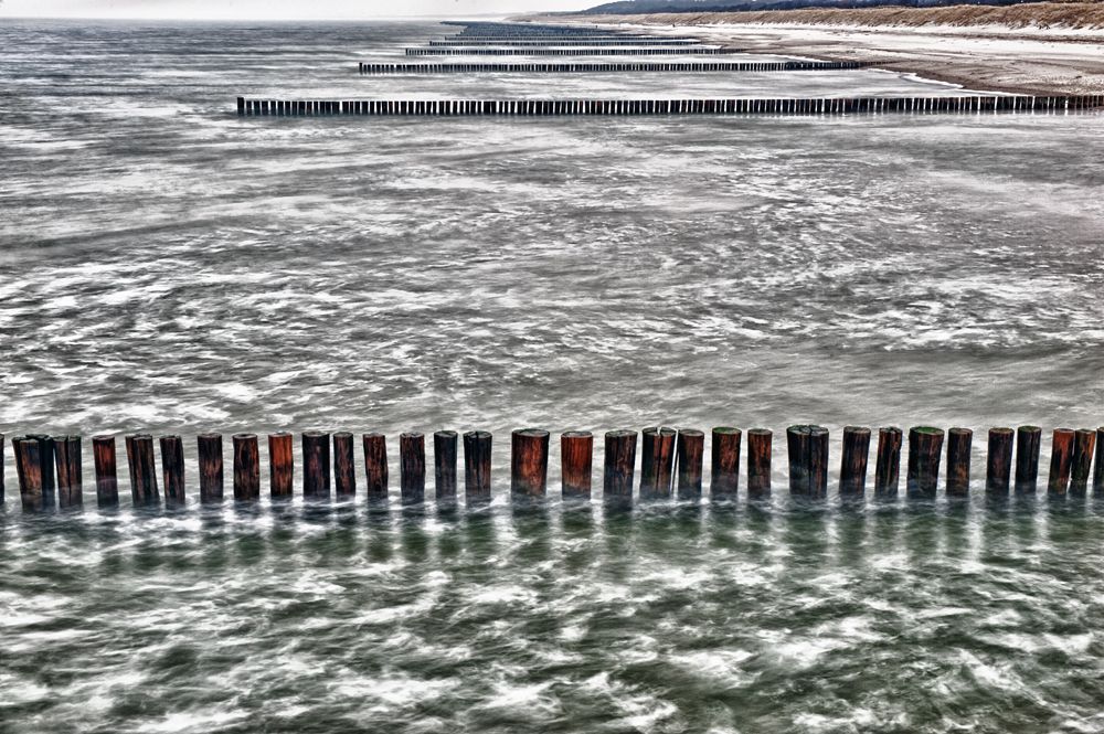 Die Ostseeküste der Inseln Rügen und Usedom im Winter.