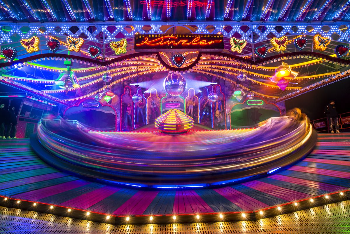 Evening light painting at the Stuttgarter Volksfest. After the Oktoberfest in Munich the second largest beer festival in the world.